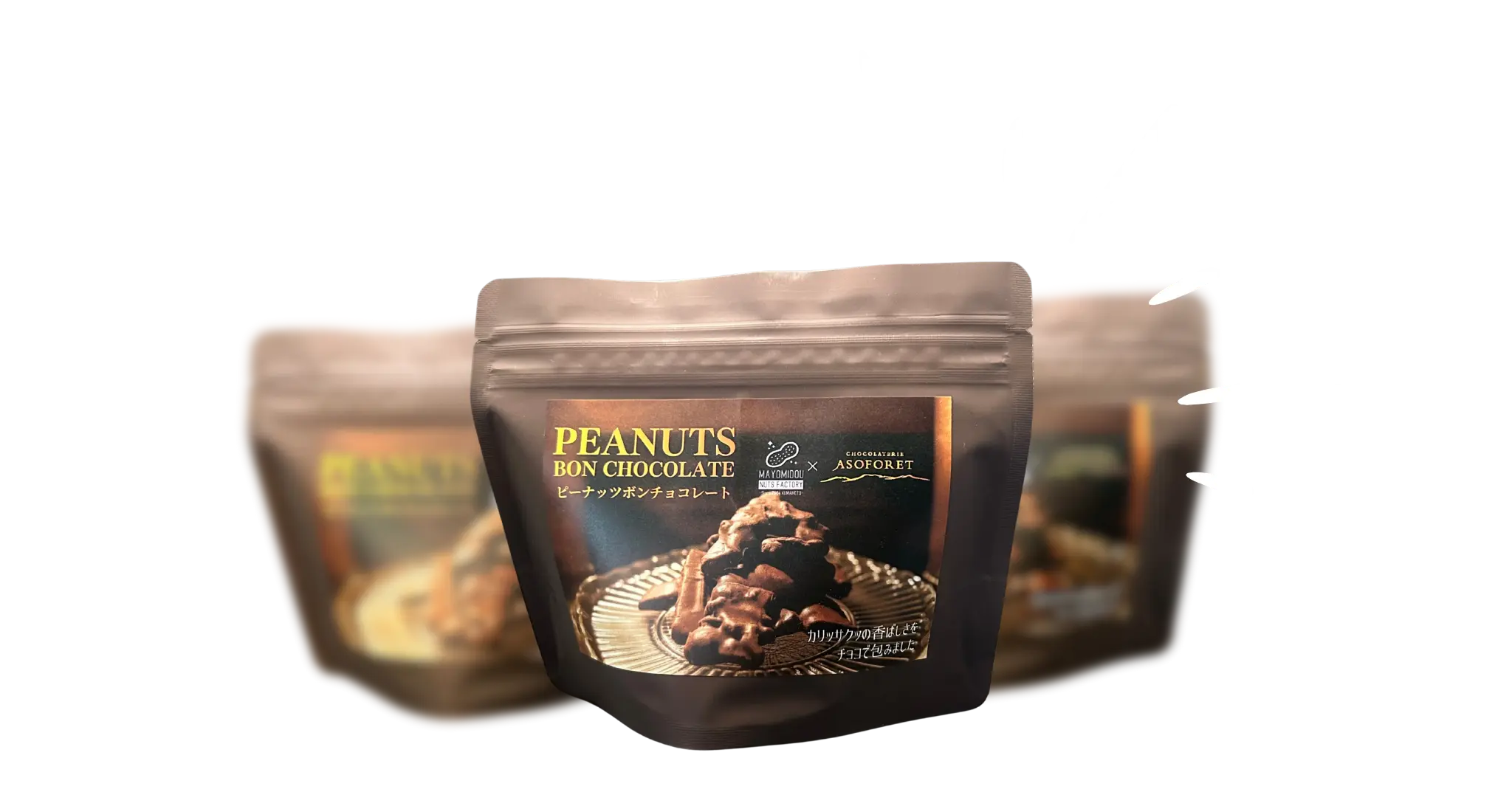 世代を超えて愛されてきたピーナッツボンに ASOFORETのチョコレートを重ねました。ナッツの食感を損なわないよう、 ひとつひとつ、職人の手仕事で 丁寧にコーティング。 素材の持ち味と、 ショコラティエの技が出会って生まれた、 新しい食感のピーナッツボンチョコレートです。ザクザク食感が、 クセになる。
